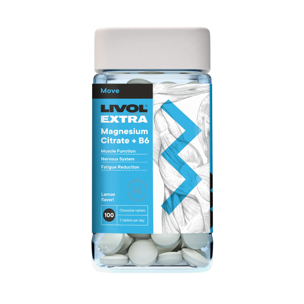 LIVOL EXTRA Magnija Citrāts + B6 – Košļājamās pastilas muskuļu un nervu atbalstam