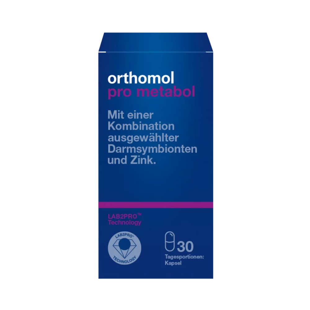 Jaunākais Orthomol Pro Metabol – katra dienas deva (1 kapsula + 1 paciņa ar 10 miljardiem dzīvo baktēriju) apvieno trīs spēcīgus virzienus: